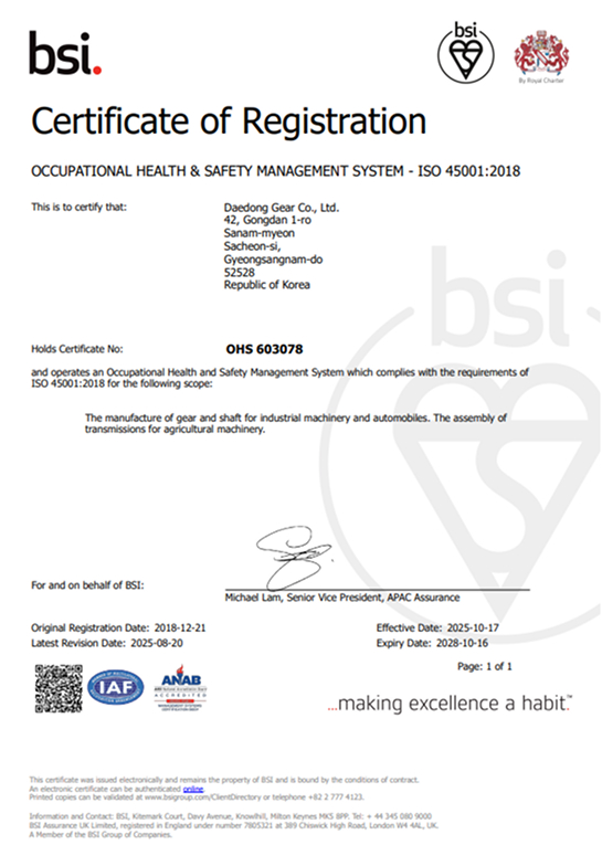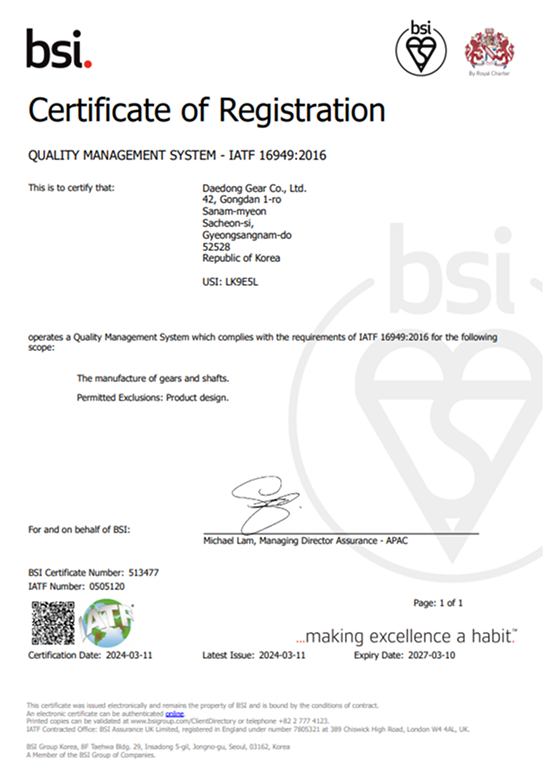 대동기어(주) 대표 : 서종환 사업자등록번호 : 619-81-3305