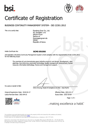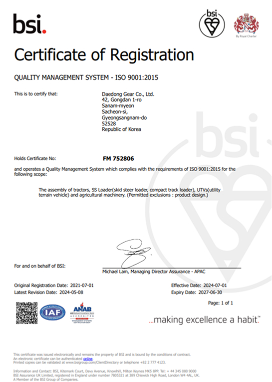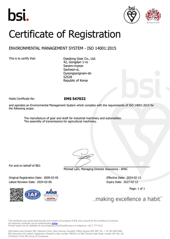 Daedong Gear Co., Ltd. CEO: Seoh Jong-hwan Business Registration No. : 619-81-3305